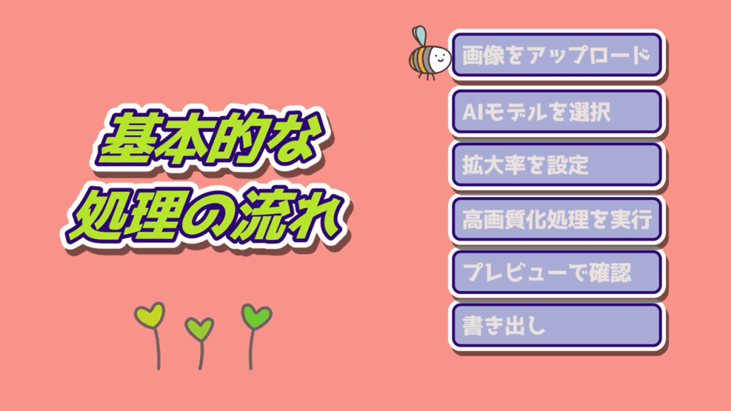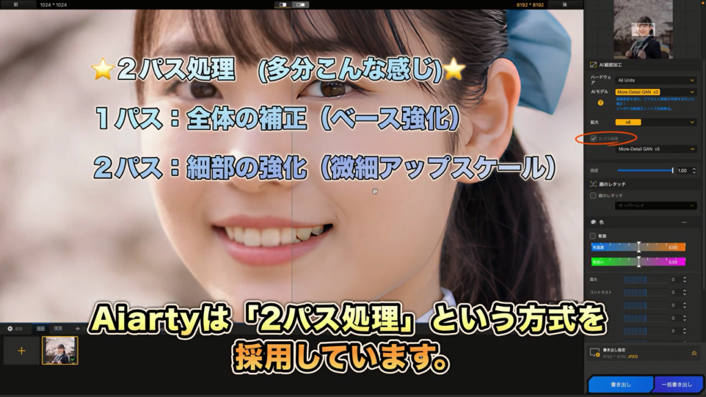 2段階で丁寧に画質を強化することで、より自然で高精細になります。