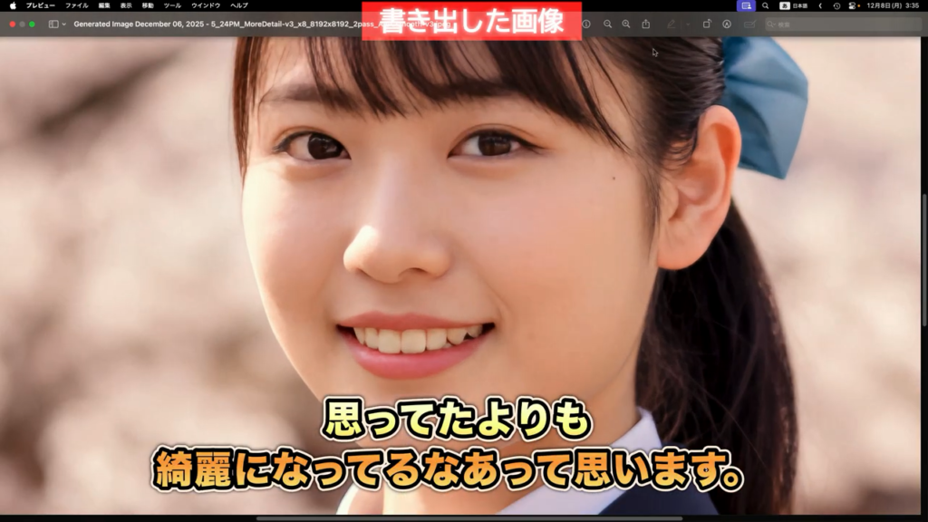 書き出した画像は、プレビューの画像よりも、さらに綺麗に見えることが多いです。