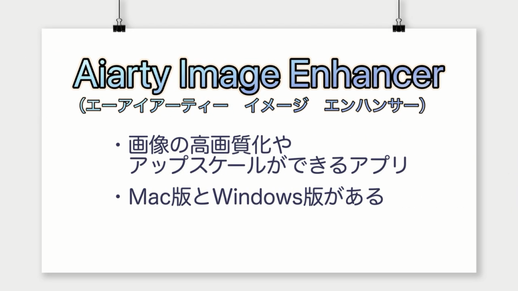 Aiarty Image Enhancerは、画像の高画質化やアップスケールができるアプリで、Mac版とWindows版があります。