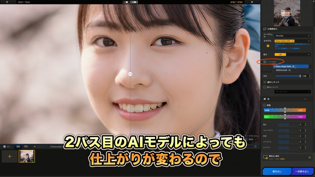 また、2パス目のAIモデルによっても仕上がりが変わるので(それほど試してないですけど・・・)