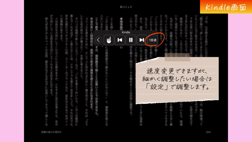 クマちゃん:「うん!あとはKindleの画面で、読み上げコントローラのアイコンをタップして、再生ボタンを押せば読み上げを開始してくれます!」
