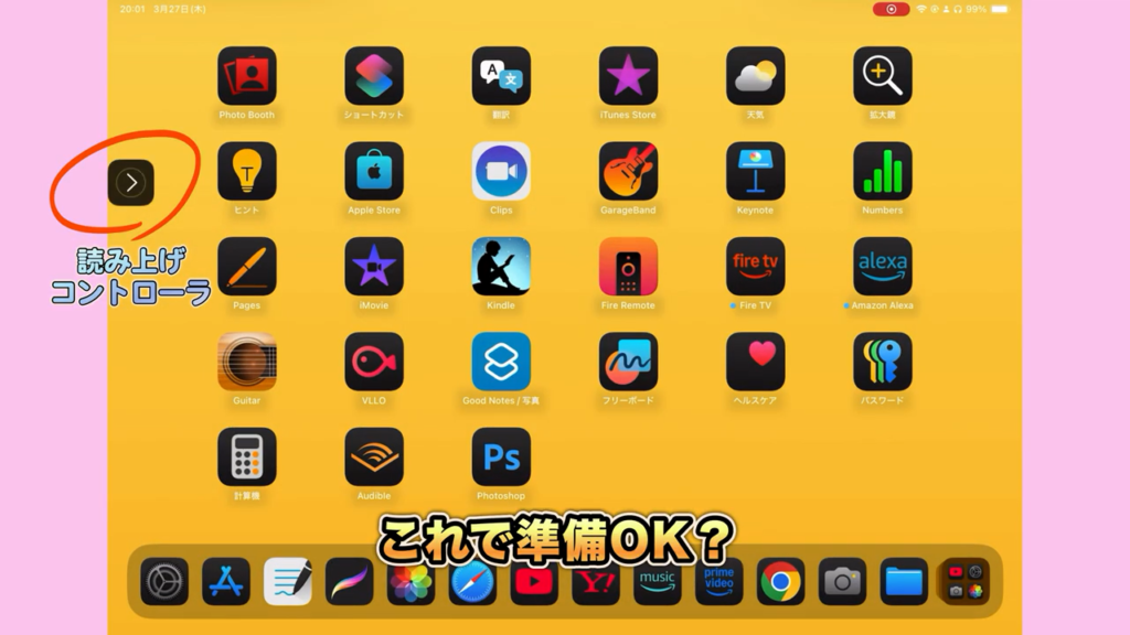 - 「読み上げコントローラ」をONにしてコントローラを表示する