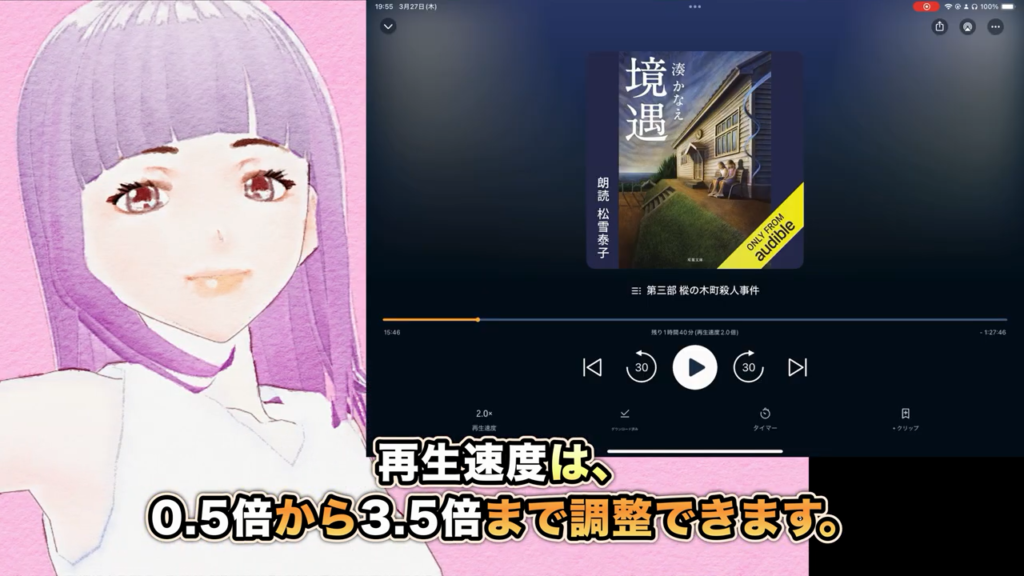 ゆり子:「Audibleって再生速度も変えられるの?」
